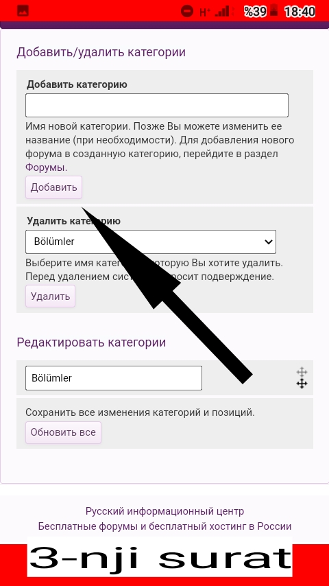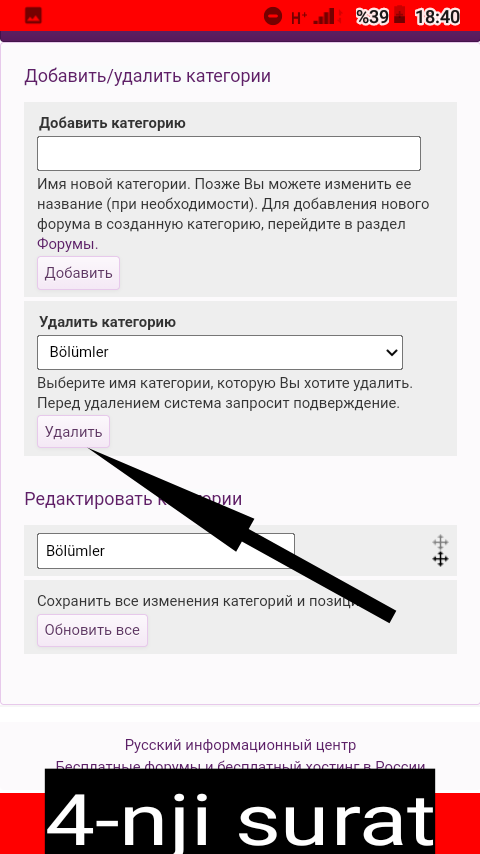 Indi siz saýta katagoriýa goşmagy öwrendiňiz . Eger katagoriýany aýyrmak isleseňiz şol ýerdäki "Удалить категорию" diýen ýerden aýyrjak katagoriýaňy saýlap "Удалить" basaýmaly .(4-nji surat)